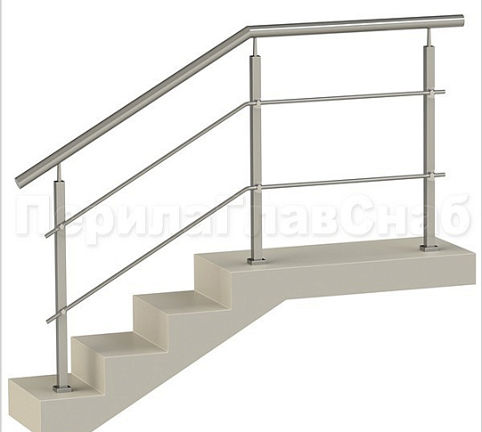 Четыре ригеля на держателях, круглый поручень и круглые стойки