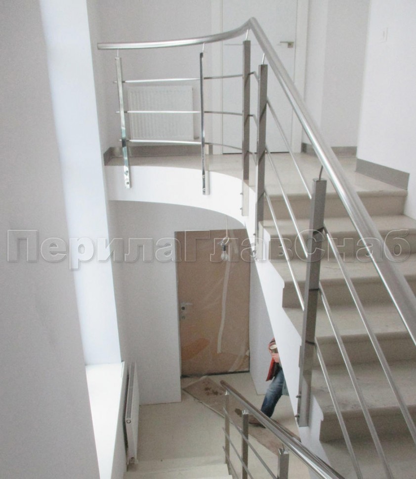 Четыре ригеля на сварке, круглый поручень и квадратные стойки