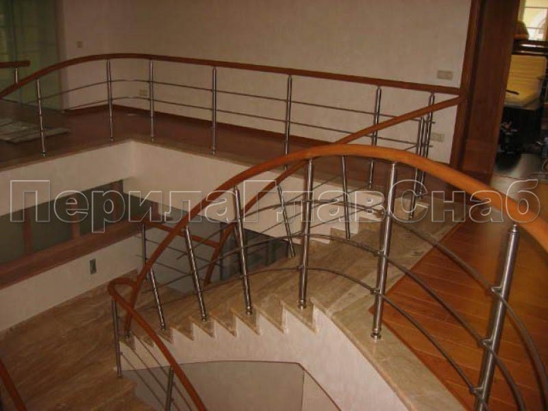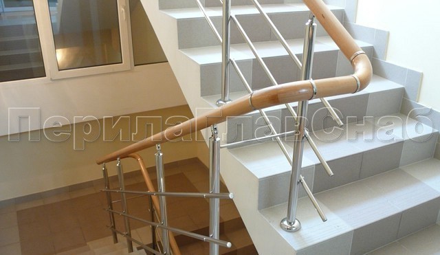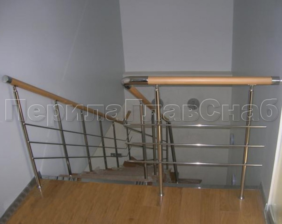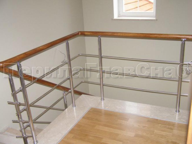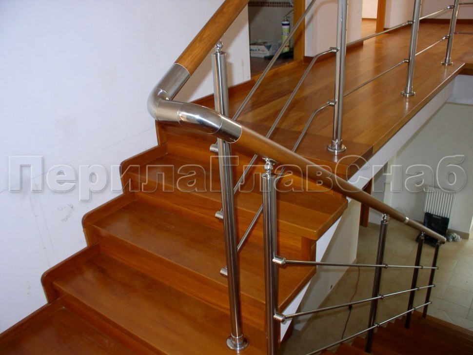 Нержавеющие ограждения без ригелей с круглым поручнем и стойками с деревянными вставками