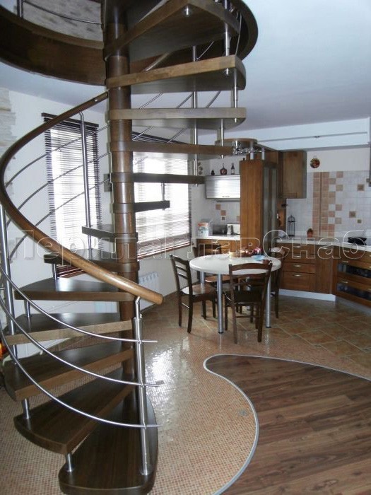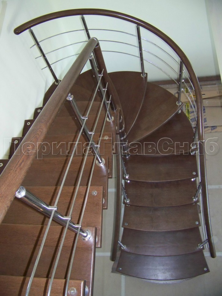 Ограждения со стойками в каждую ступень с круглым деревянным поручнем без ригелей