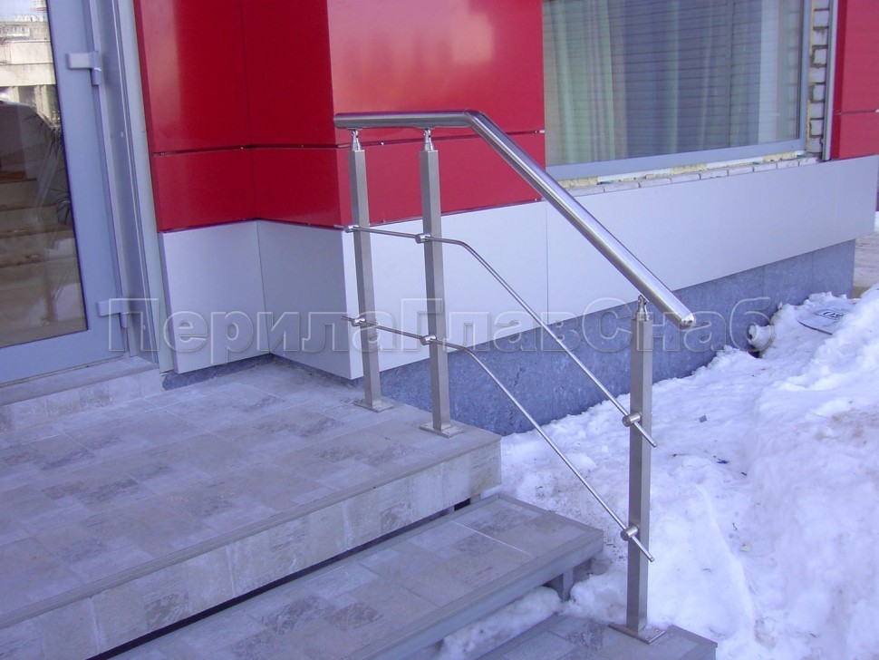 Четыре ригеля на сварке, квадратный поручень и круглые стойки