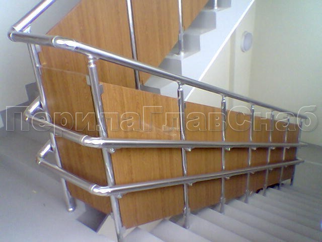 Нержавеющие ограждения с двойным поручнем без ригелей - вариант 2