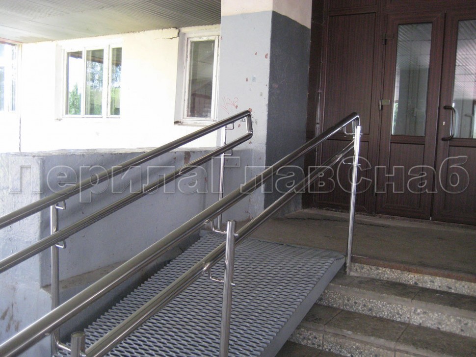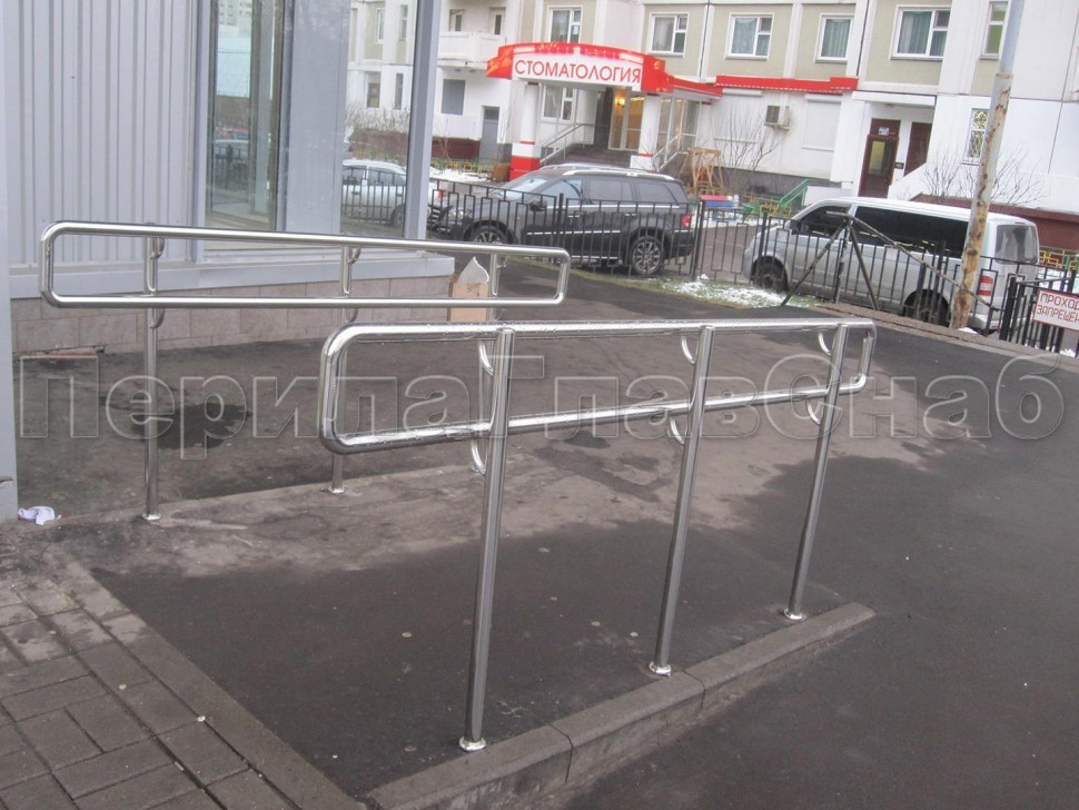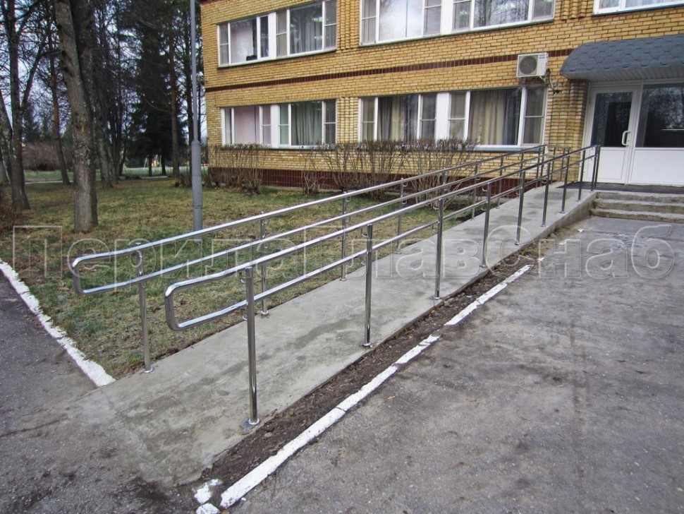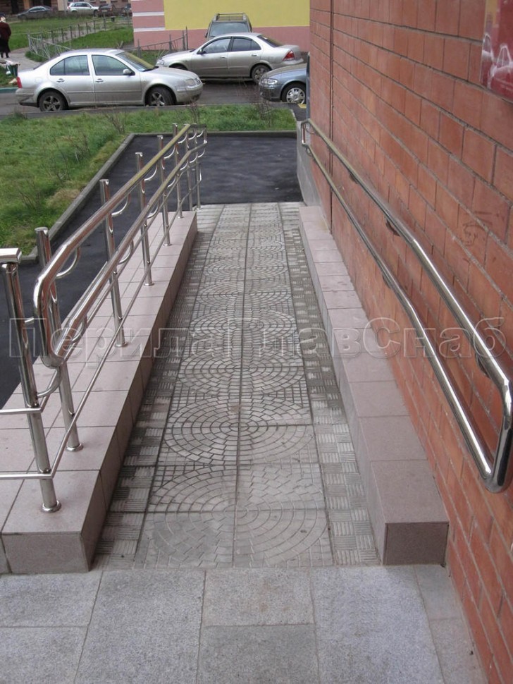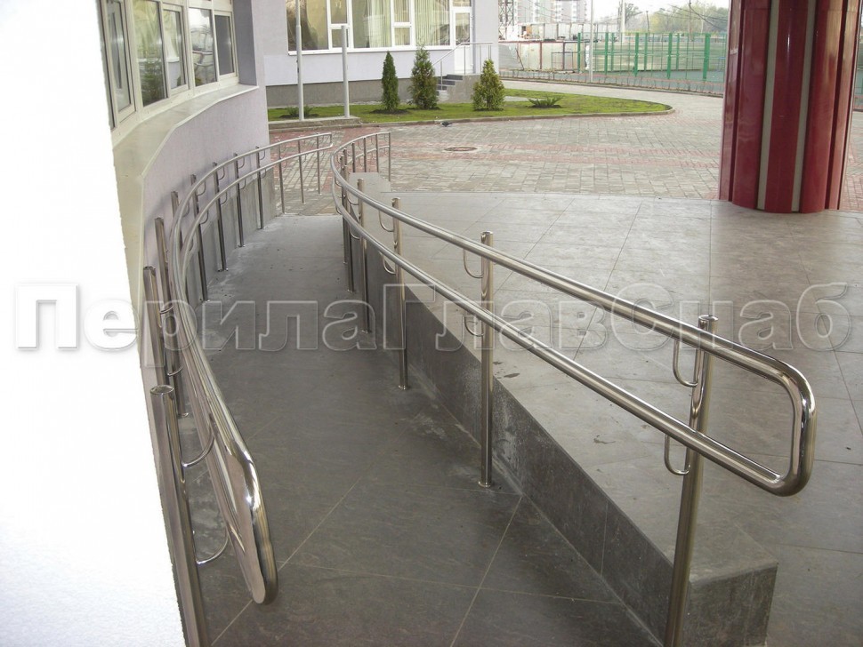 Окончание поручней пандуса скругленное.