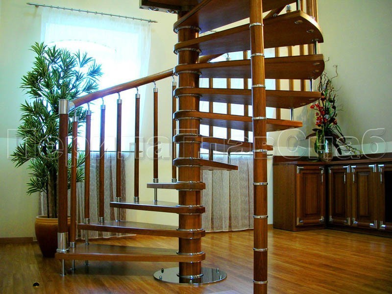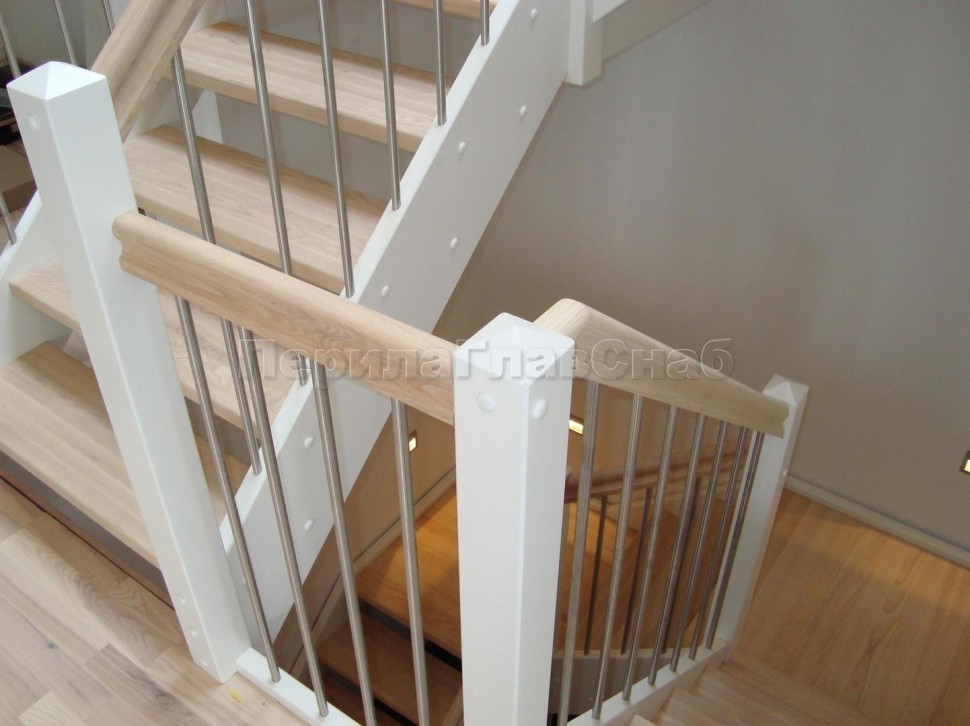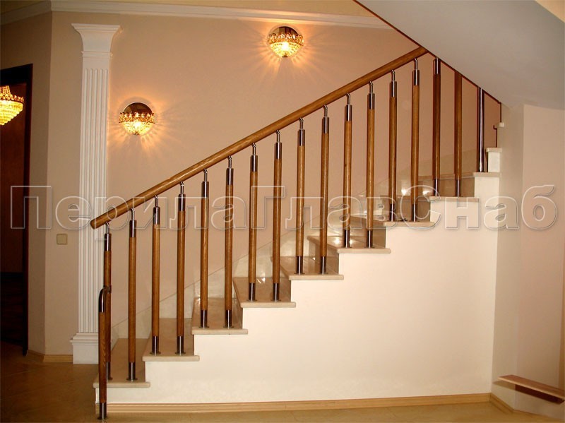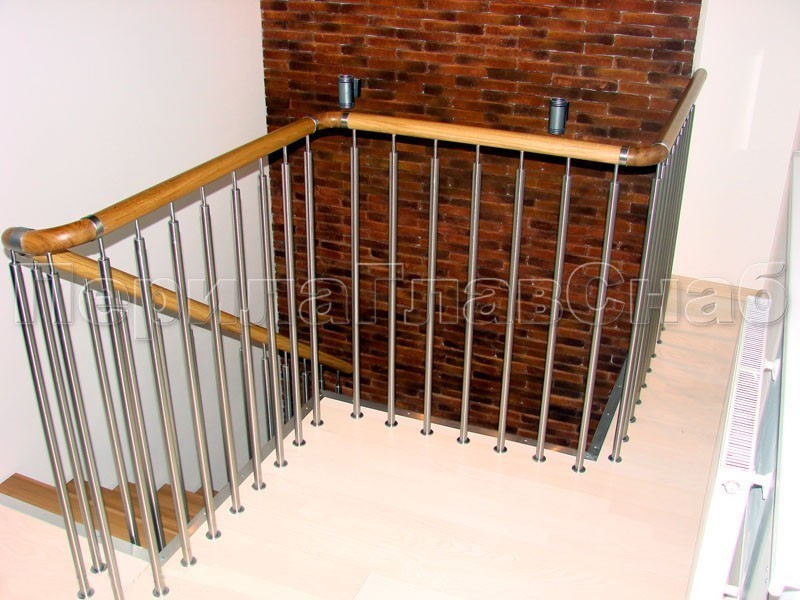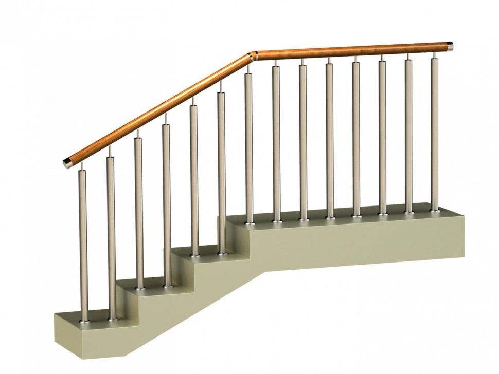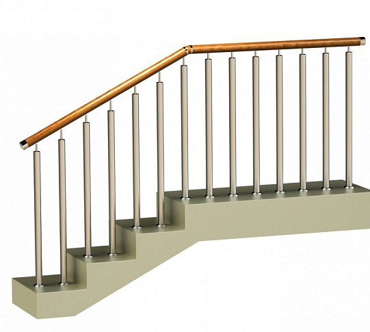 Записаться на встречу Ограждения с двумя стойками в каждую ступень с деревянным поручнем и без ригелей