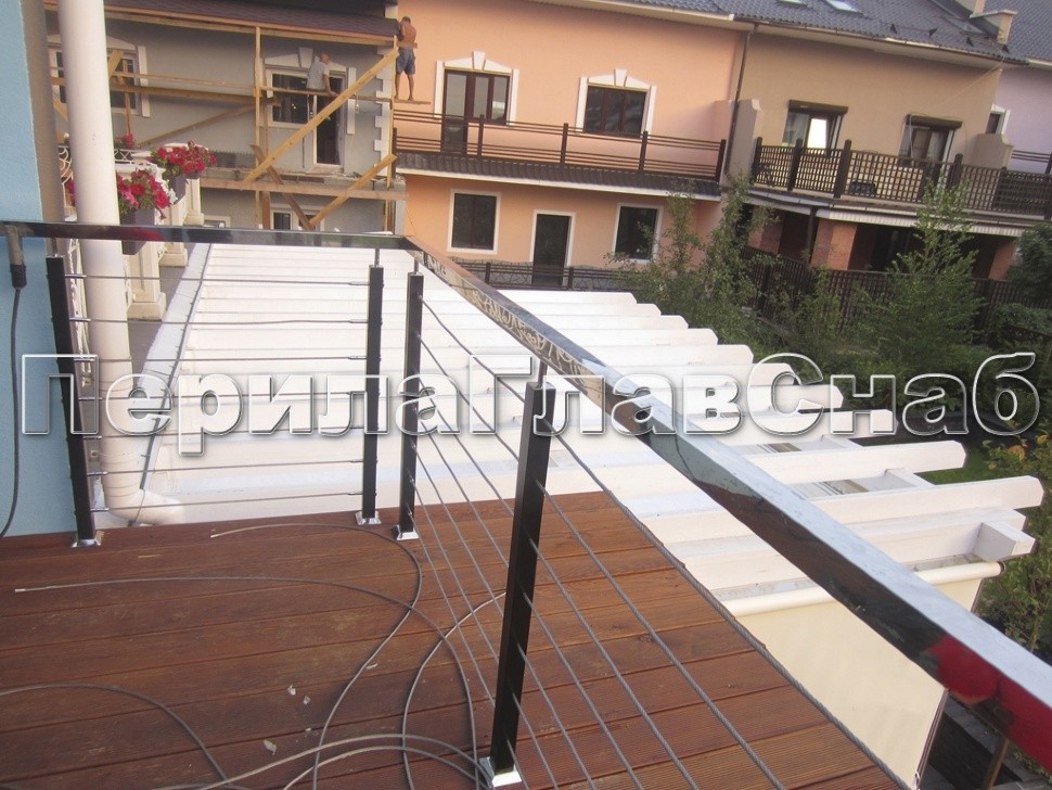 - Прочность. Конструкция ограждений включает в себя поручни, стойки, тросы, а также специальную фурнитуру. Все это при условии правильного монтажа обеспечивает защиту от нагрузок.