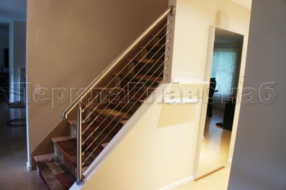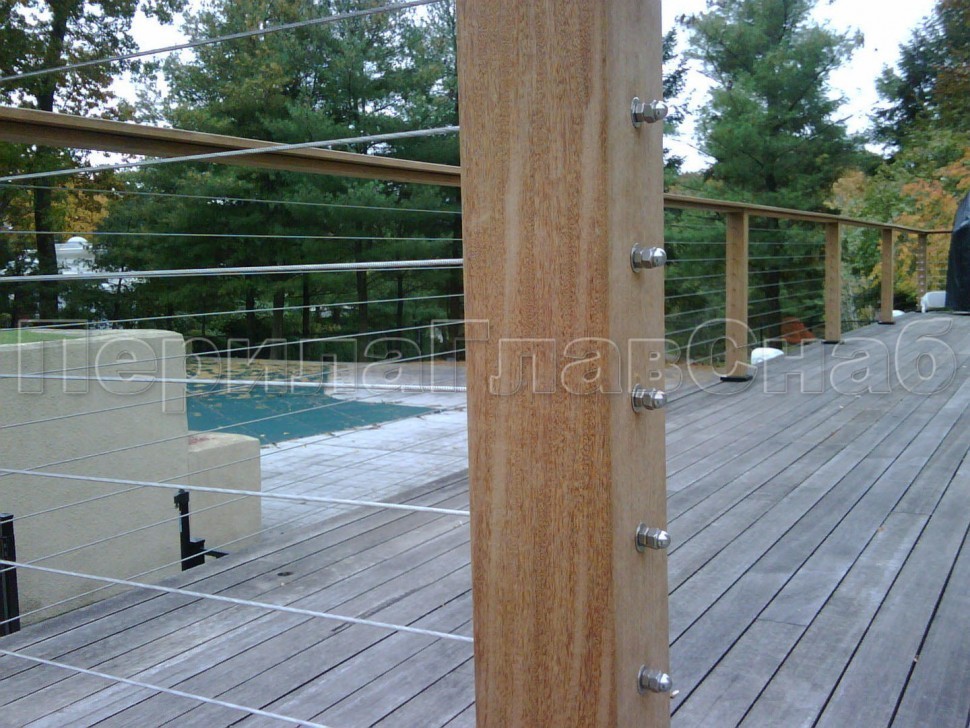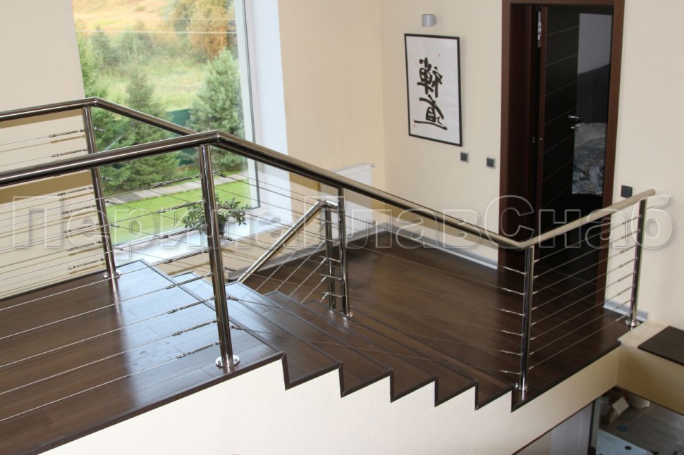 Ограждения из нержавейки. Заполнение из 7ми тросиков + декоративные наконечники