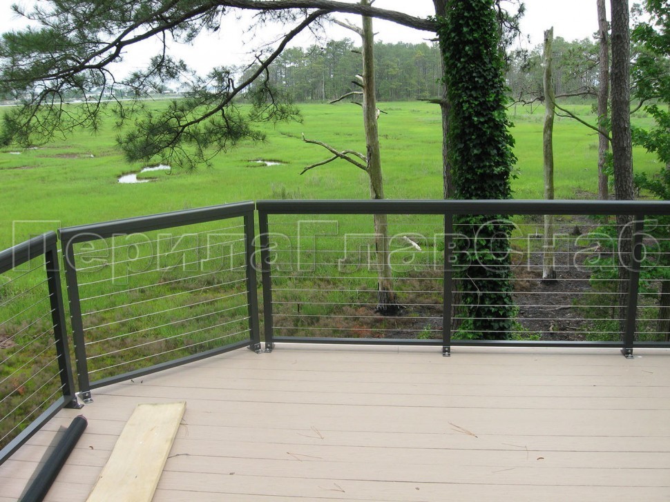 Ограждения из нержавейки. Заполнение из 2х тросиков. Квадратные стойки
