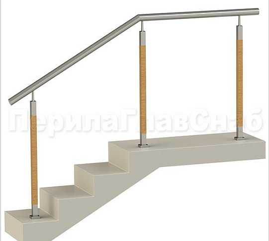 Нержавеющие ограждения без ригелей с круглым поручнем и стойками с деревянными вставками