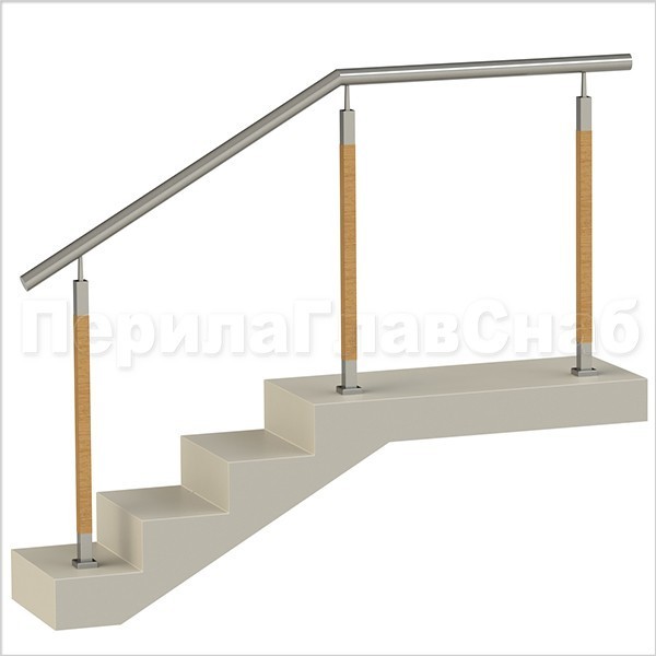 Три ригеля на сварке, квадратный деревянный поручень и круглые стойки