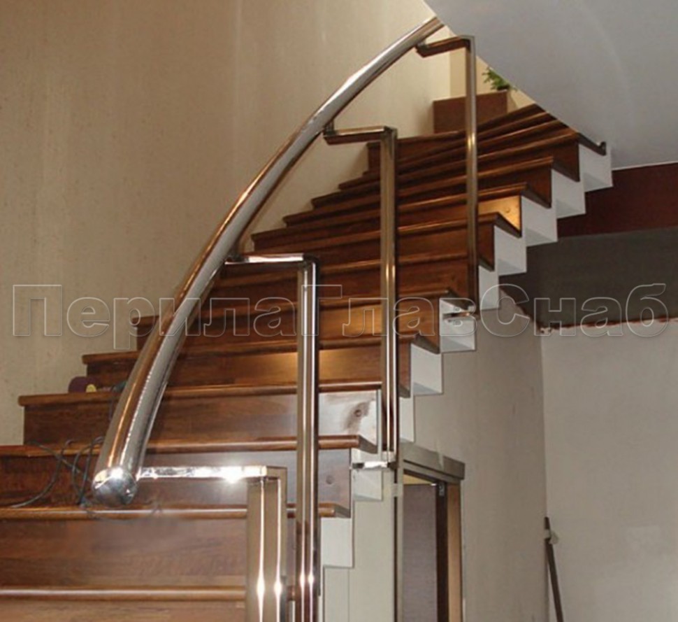 Ограждения со стойками в каждую ступень с круглым деревянным поручнем без ригелей