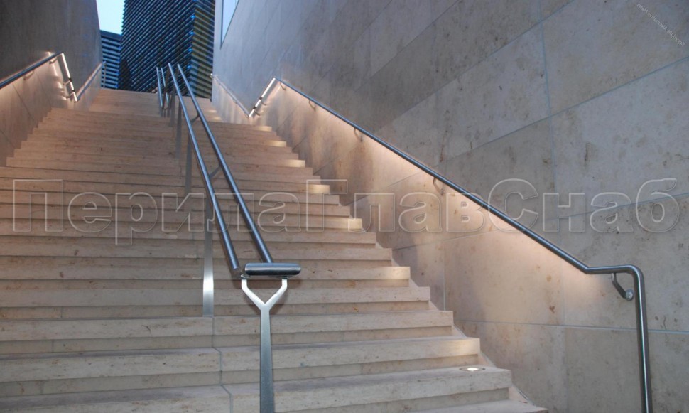 Ограждения с двумя стойками в каждую ступень с пластиковым поручнем и без ригелей