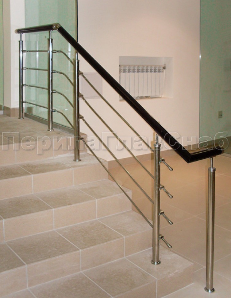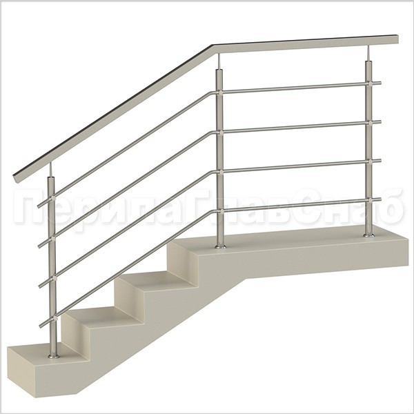 Четыре ригеля на держателях, круглый поручень и квадратные стойки