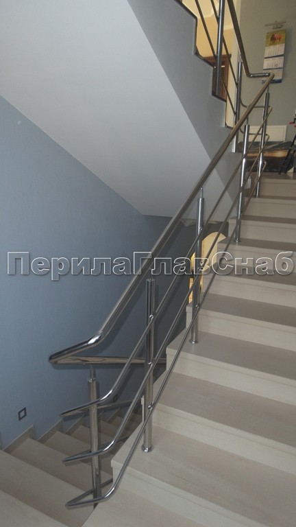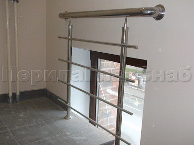 Четыре ригеля на сварке, квадратный поручень и круглые стойки