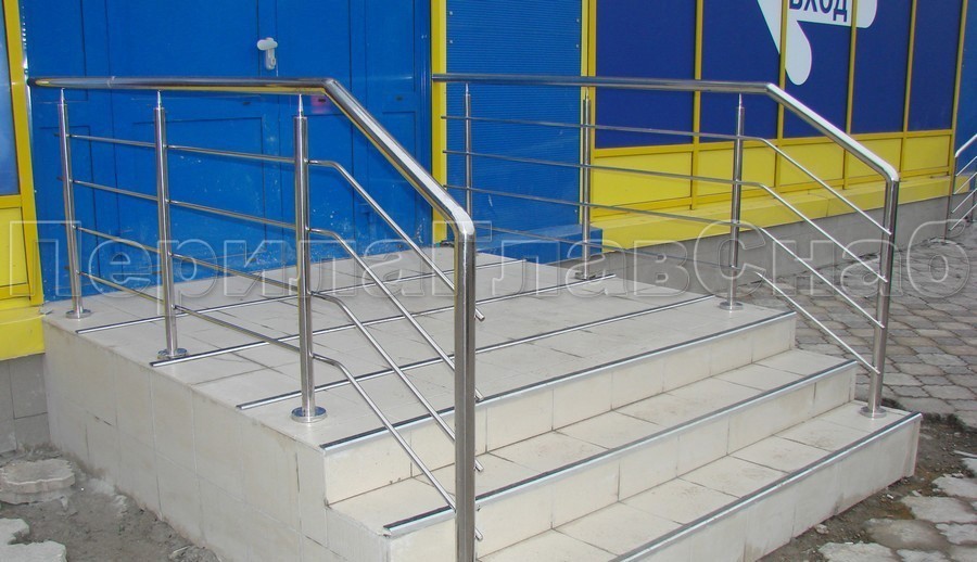 Четыре ригеля на сварке, круглый поручень и круглые стойки для крыльца
