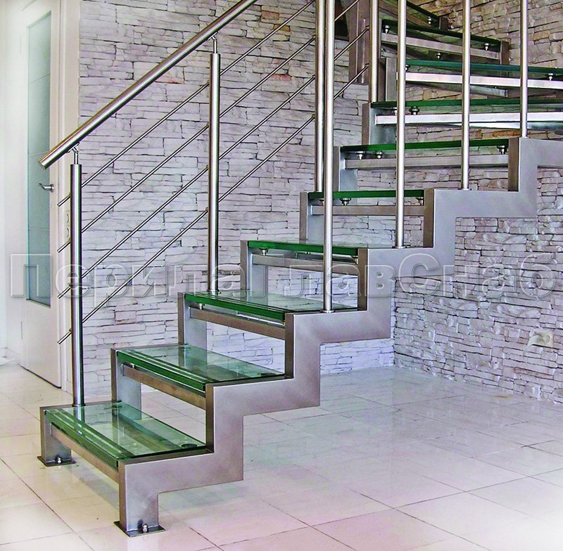 Ограждение для лестницы из нержавейки с зажимными стеклодержателями для крыльца