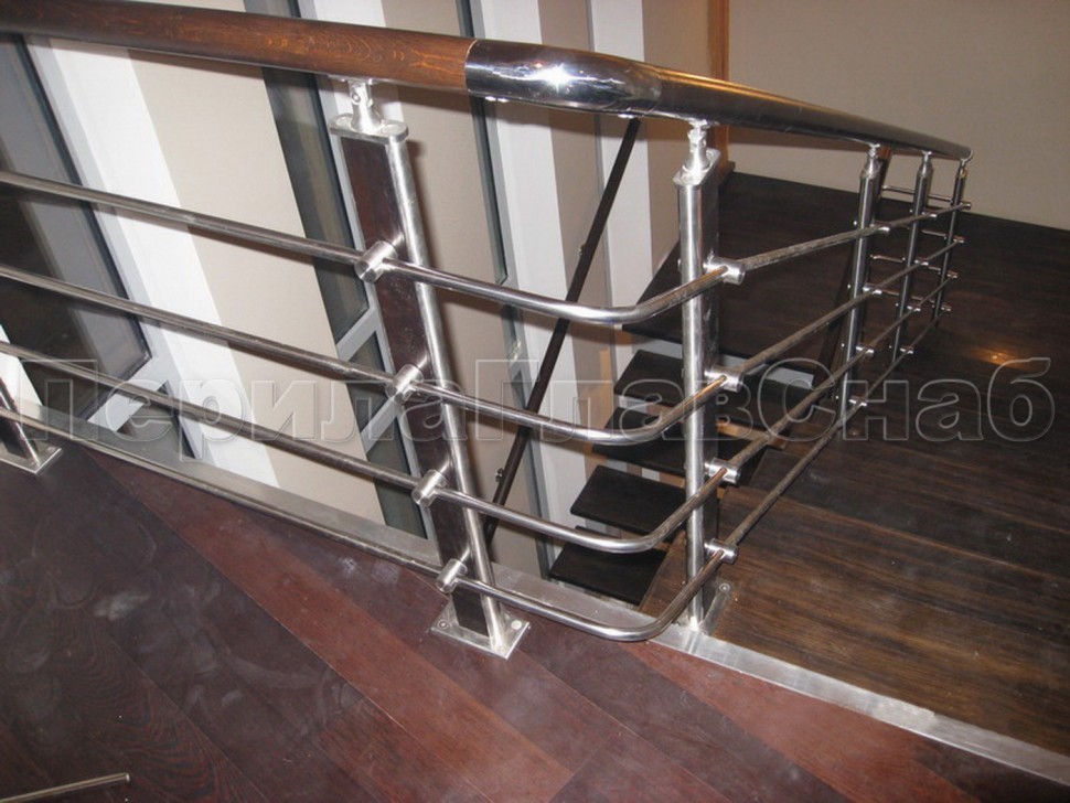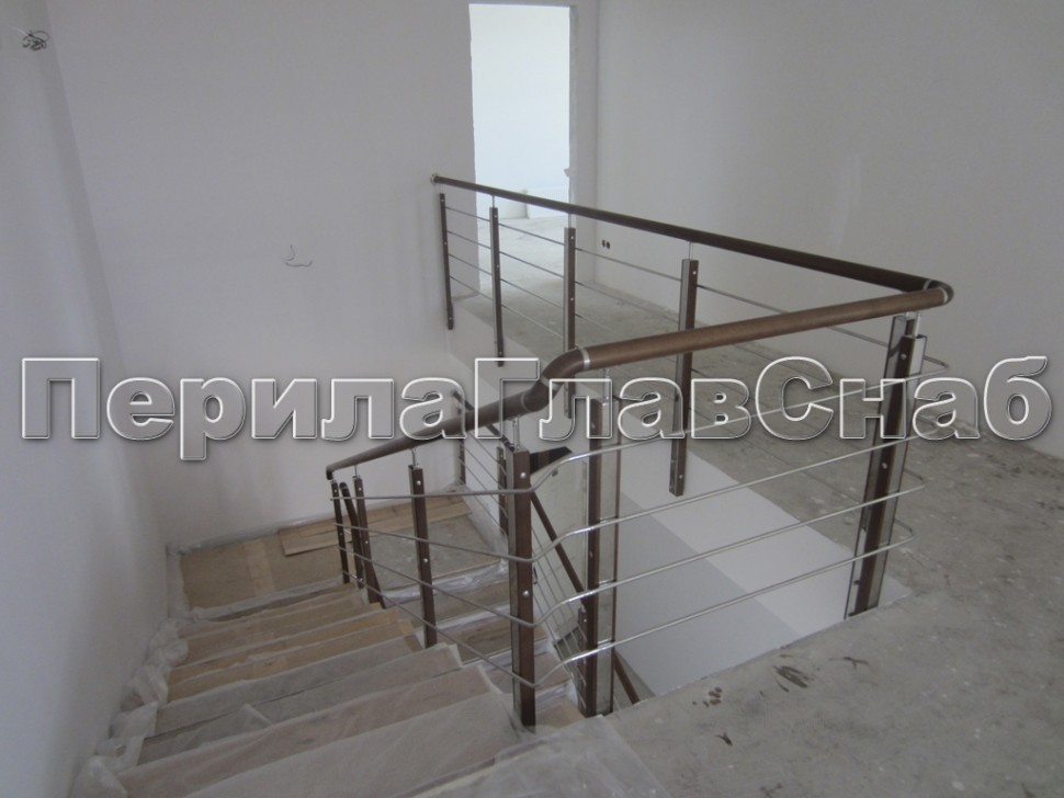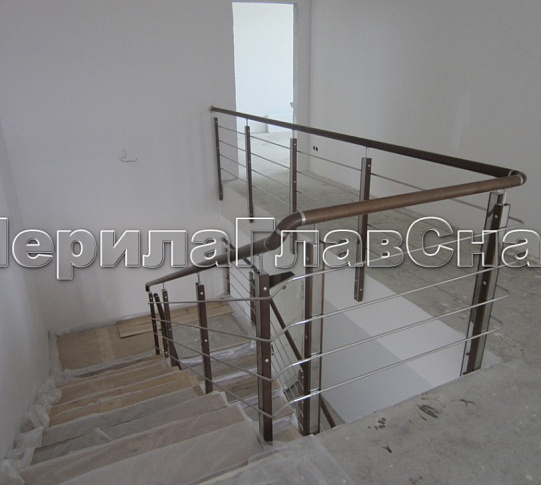 Записаться на встречу Ограждение с деревянным поручнем и стойками с деревянными вставками, с ригелями