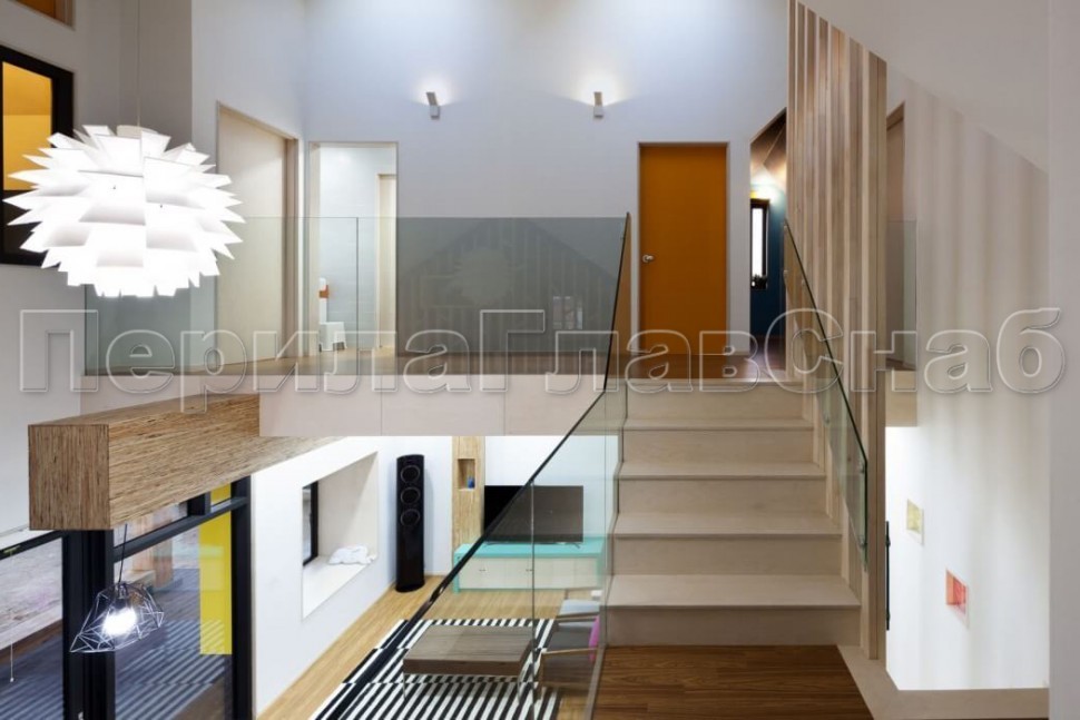 Ограждение с профильным поручнем с пазом на точечном креплении на лестнице
