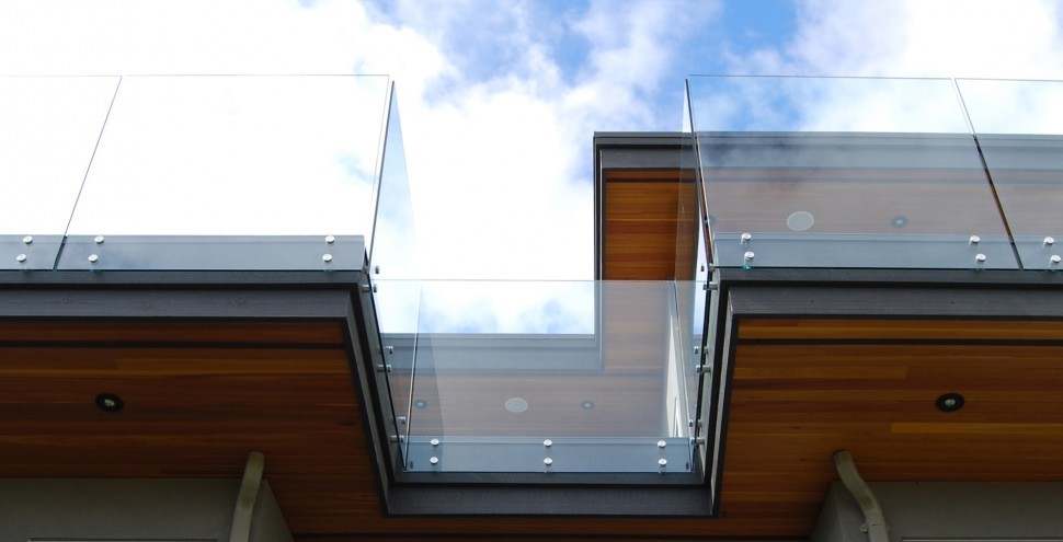 Ограждение с квадратным деревянным поручнем на точечном креплении