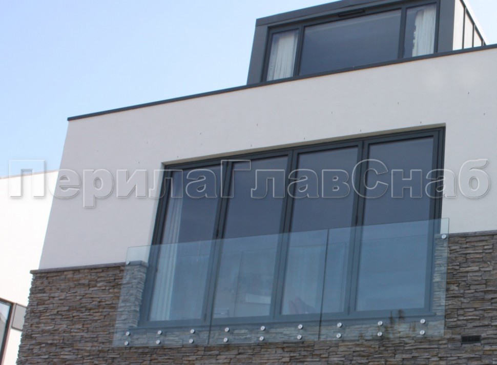 Ограждение с профильным поручнем с пазом на точечном креплении