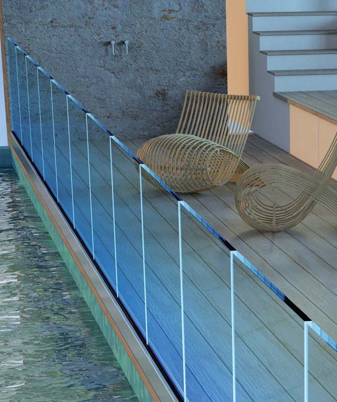 Ограждение с поручнем с пазом в зажимном профиле на лестнице