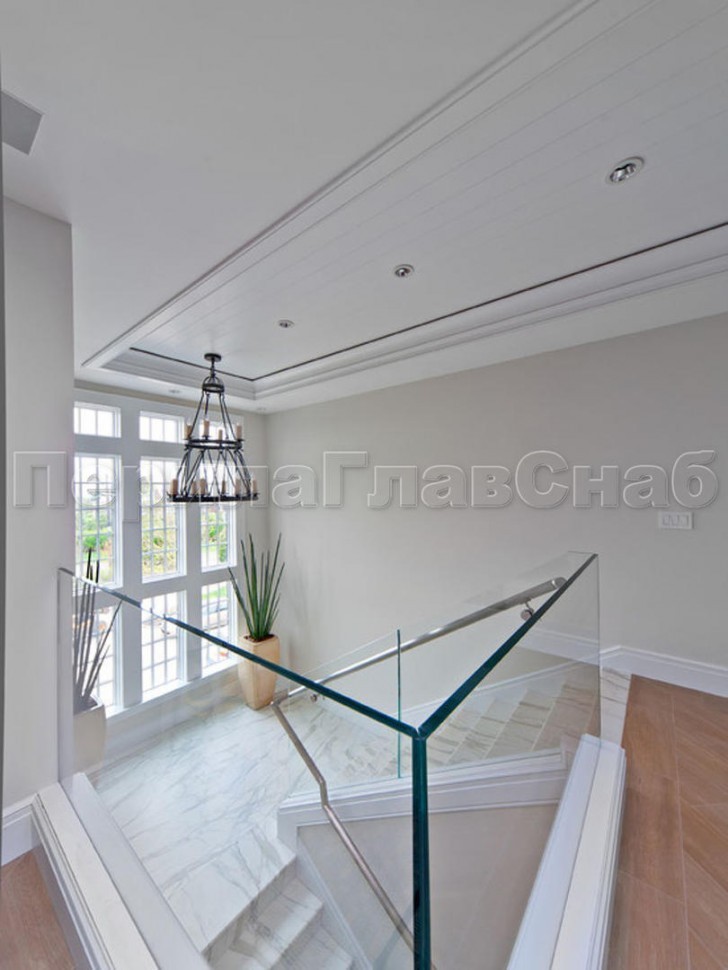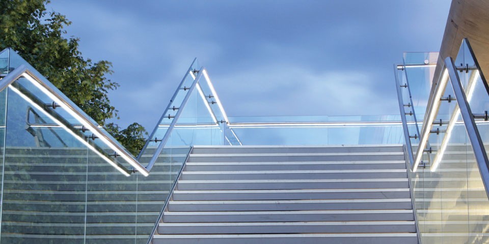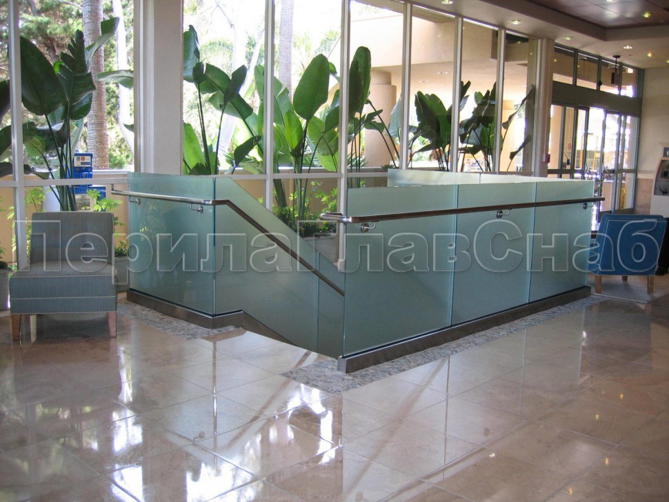 Записаться на встречу Ограждение с поручнем на выносе в зажимном профиле на лестнице