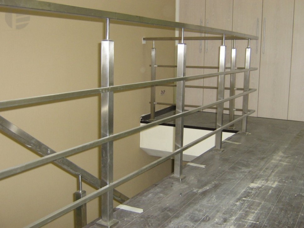 Записаться на встречу Три ригеля на держателях, квадратный поручень и круглые стойки
