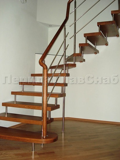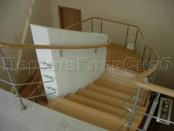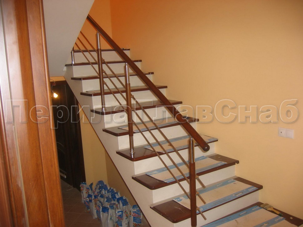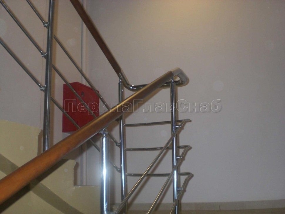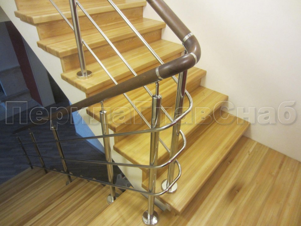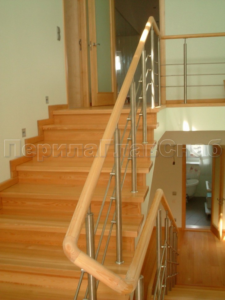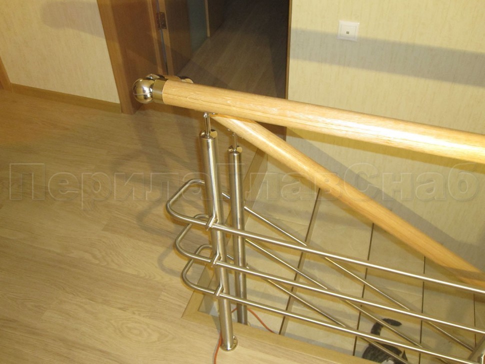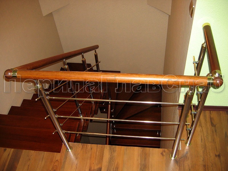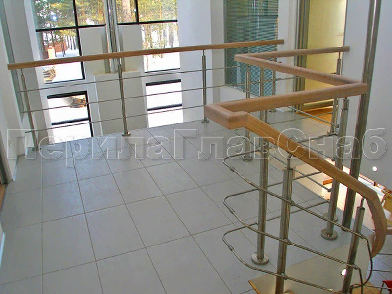 Записаться на встречу Три ригеля на сварке, круглый деревянный поручень и круглые стойки