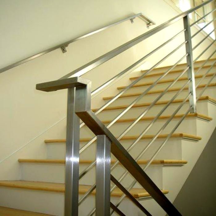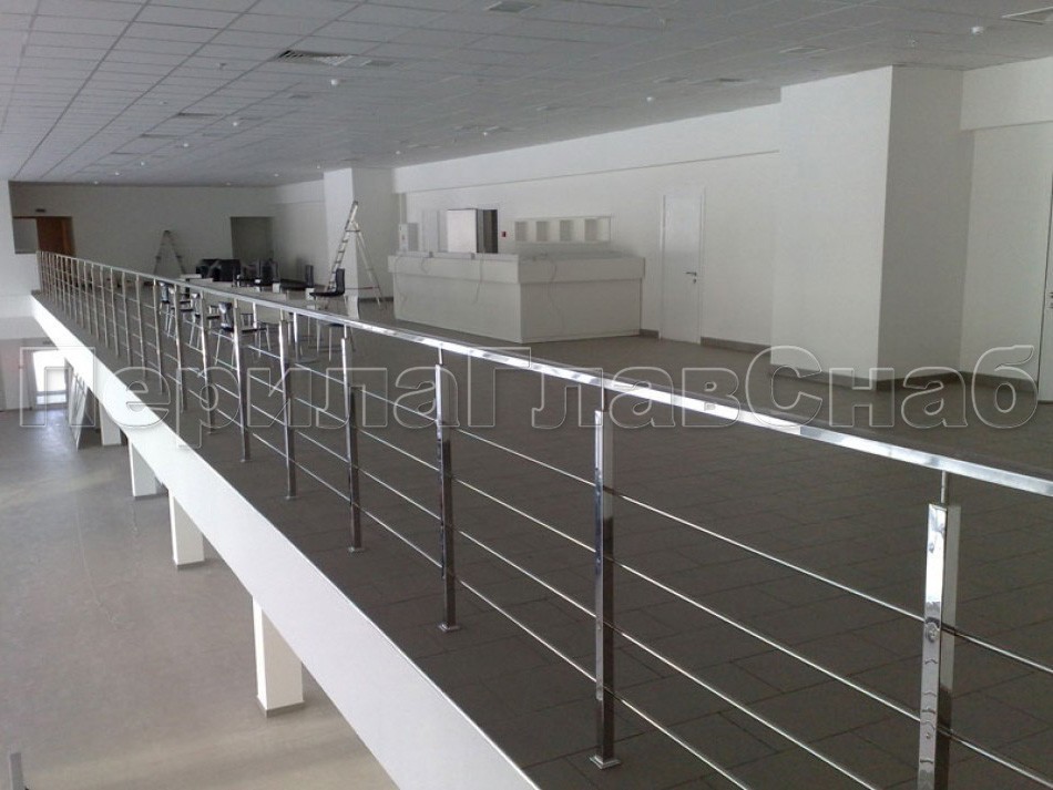 Записаться на встречу Три ригеля на сварке, квадратный поручень и круглые стойки