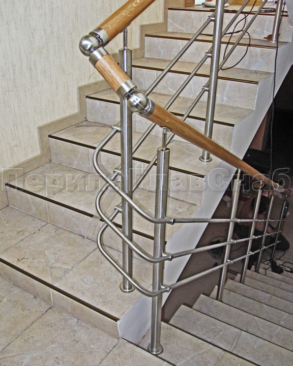 Нержавеющие ограждения без ригелей с круглым поручнем и стойками с деревянными вставками