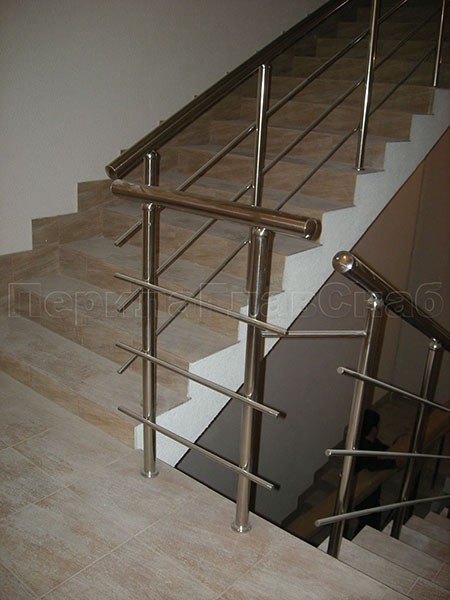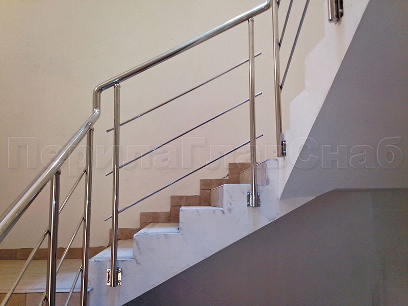 Четыре ригеля на сварке, квадратный поручень и круглые стойки