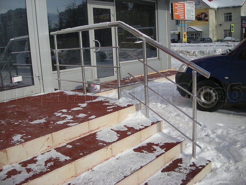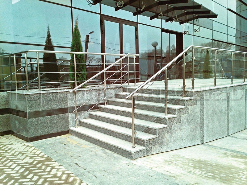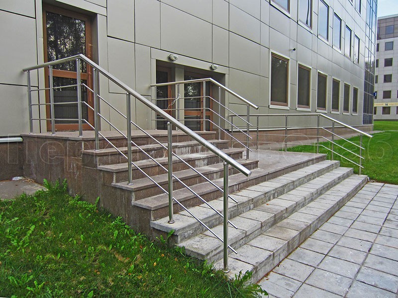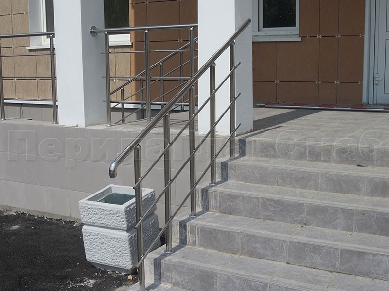 Нержавеющие ограждения для школ и детских садов с вертикальным заполнением “Частокол” - вариант №1 для крыльца