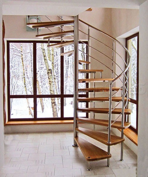 Ограждения со стойками в каждую ступень с круглым деревянным поручнем без ригелей