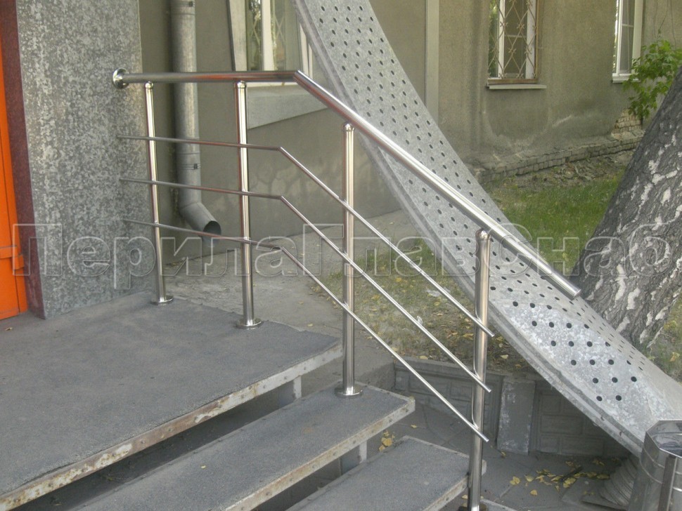 Четыре ригеля на сварке, круглый поручень и круглые стойки для крыльца