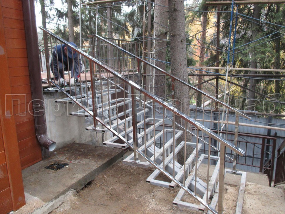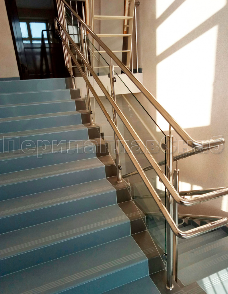 Записаться на встречу Нержавеющие ограждения для школ и детских садов с вертикальным заполнением “Частокол” - вариант №1 для крыльца
