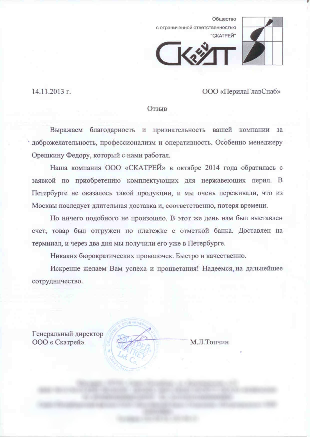 Рекомендательное письмо от компании ООО 'СКАТРЕЙ'