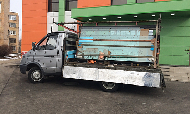 Стекло «приезжает» на «пирамиде» (см. фото). Далее его снимают краном-манипулятором с вакуумной присоской и поднимают на установленные фланцы. Оста...