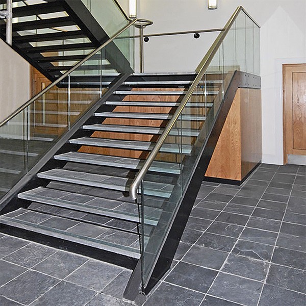 Стеклянные перила для маршевых лестниц в офисном здании.