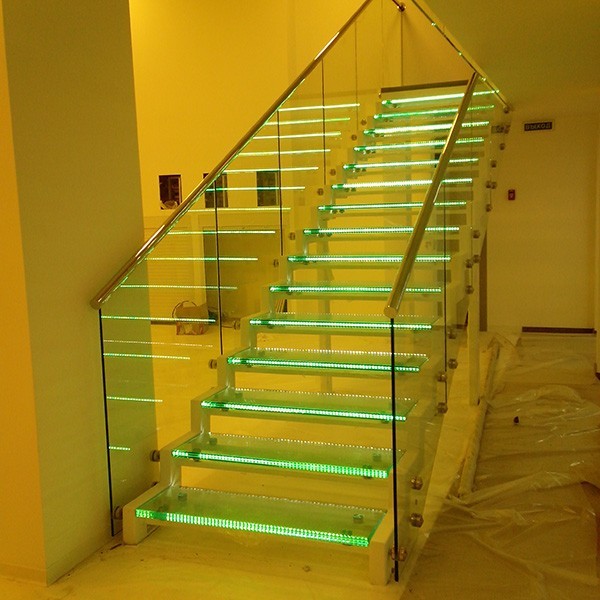 Нержавеющие перила и ограждения со стеклом и подсветкой