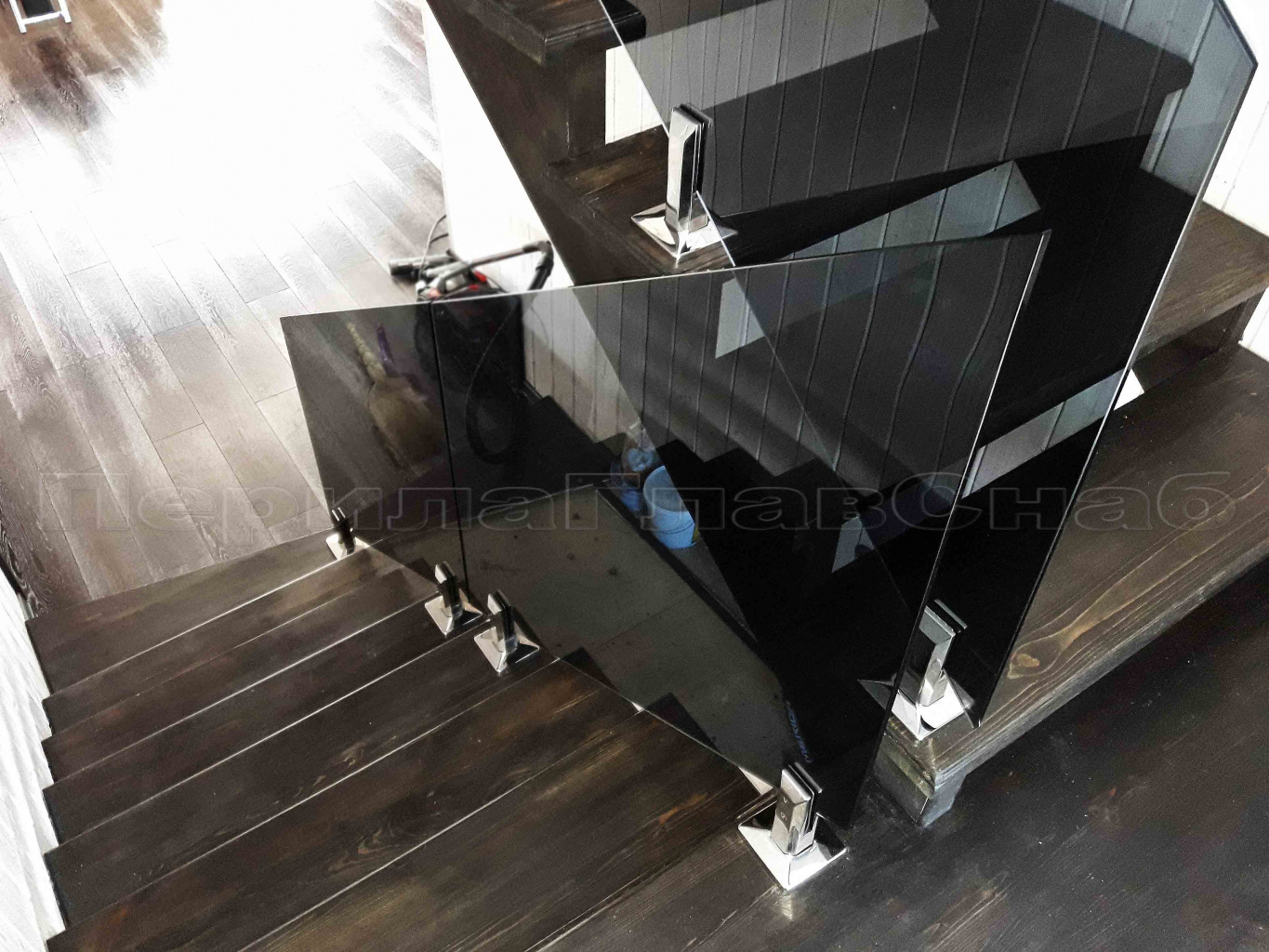 Ограждение лестницы с квадратными стойками и пластинчатыми стеклодержателями в Санкт-Петербурге. Готовые проекты ПерилаГлавСнаб - фото 1 Ограждение лестницы с квадратными стойками и пластинчатыми стеклодержателями в Санкт-Петербурге. Готовые проекты ПерилаГлавСнаб - фото 2