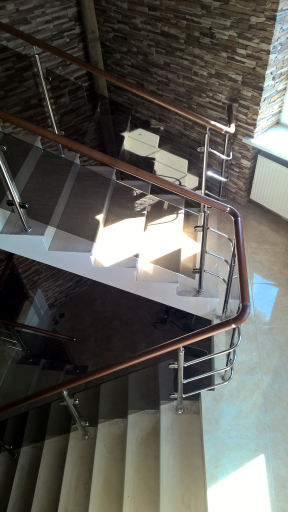 Виды стеклянных ограждений лестничных маршей и площадок (с фото):