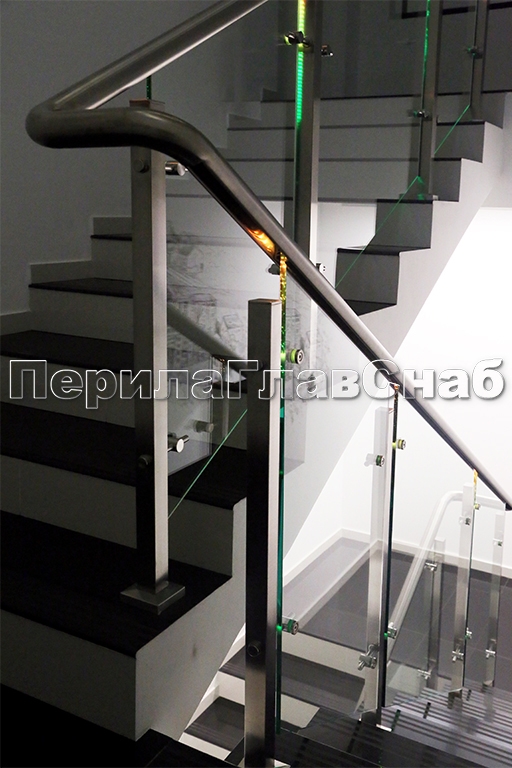 Ограждения лестниц на несущем стекле с подсветкой в Санкт-Петербурге. Готовые проекты ПерилаГлавСнаб - фото 1 Ограждения лестниц на несущем стекле с подсветкой в Санкт-Петербурге. Готовые проекты ПерилаГлавСнаб - фото 2