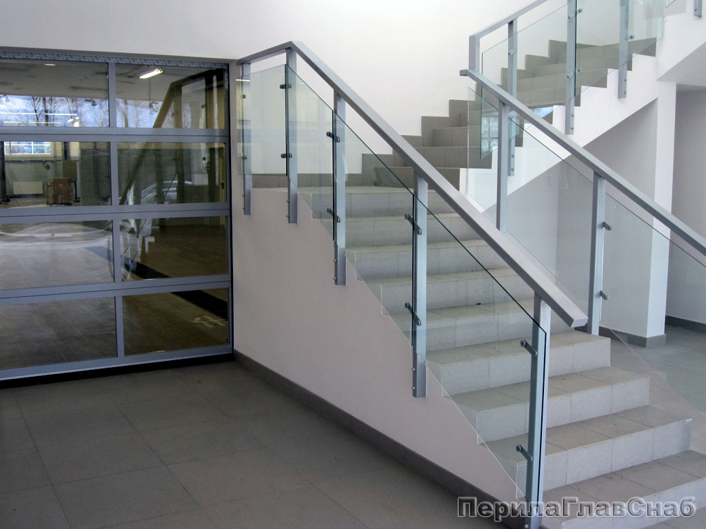 Ограждение лестницы с квадратными стойками и пластинчатыми стеклодержателями в Санкт-Петербурге. Готовые проекты ПерилаГлавСнаб - фото 1 Ограждение лестницы с квадратными стойками и пластинчатыми стеклодержателями в Санкт-Петербурге. Готовые проекты ПерилаГлавСнаб - фото 2