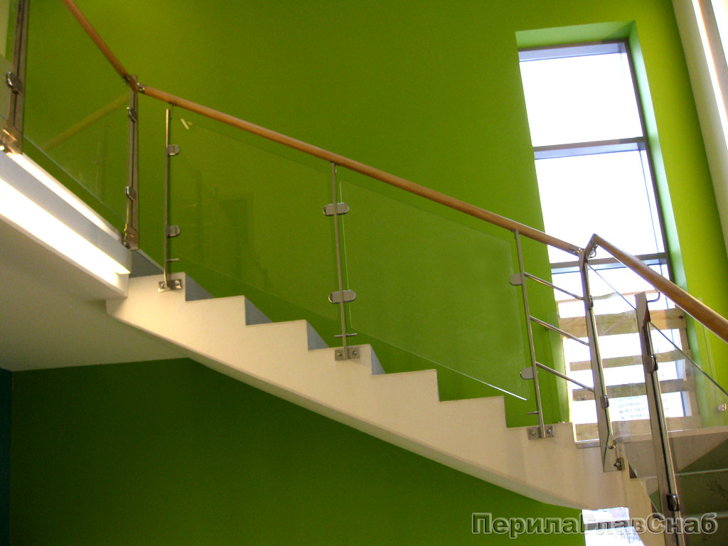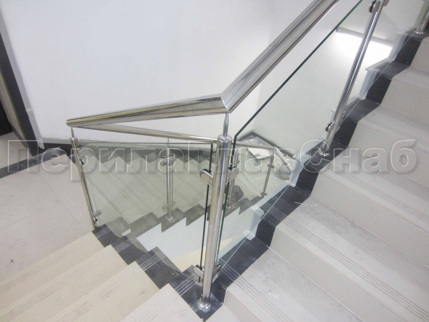 Ограждение для лестницы из нержавейки с зажимными стеклодержателями для крыльца в Санкт-Петербурге. Готовые проекты ПерилаГлавСнаб - фото 1 Ограждение для лестницы из нержавейки с зажимными стеклодержателями для крыльца в Санкт-Петербурге. Готовые проекты ПерилаГлавСнаб - фото 2
