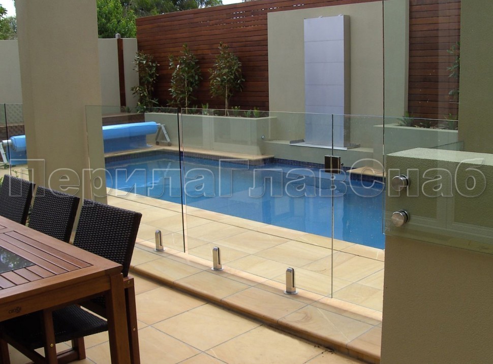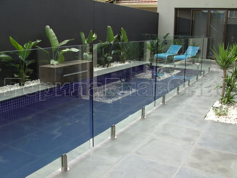 Ограждение с профильным поручнем с пазом на точечном креплении