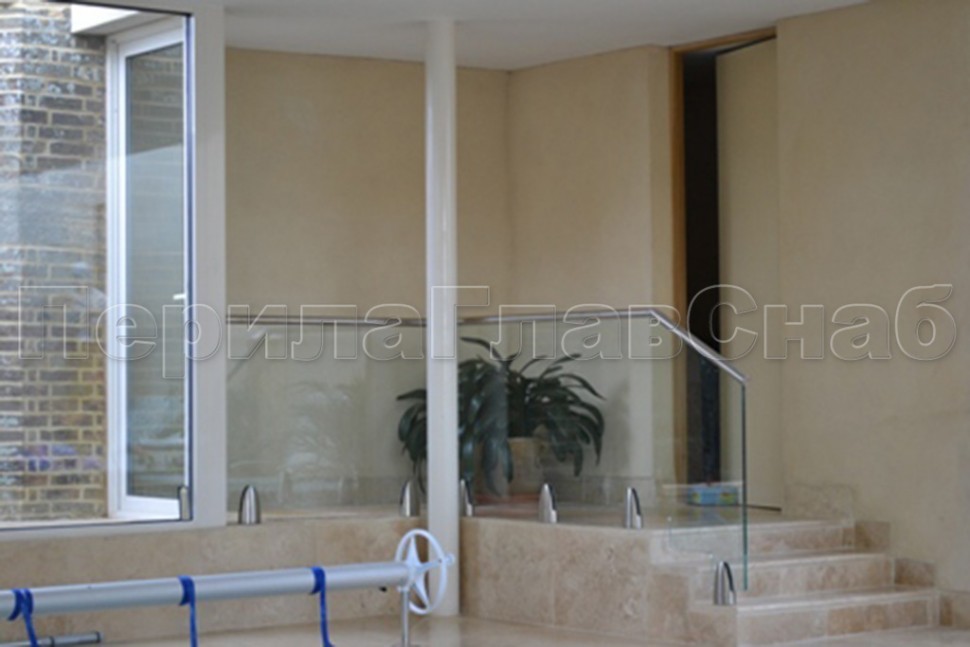 Ограждение с профильным поручнем с пазом на точечном креплении на лестнице