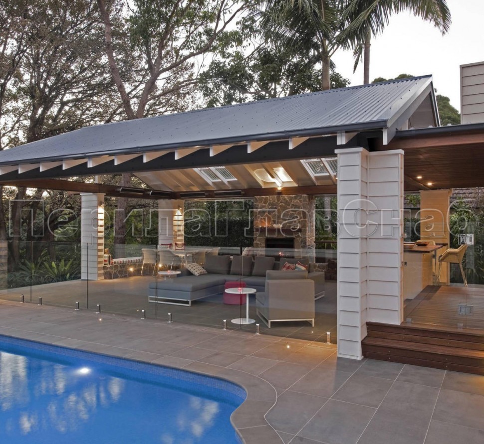 Ветрозащитное ограждение без стоек, на точечном креплении в торец