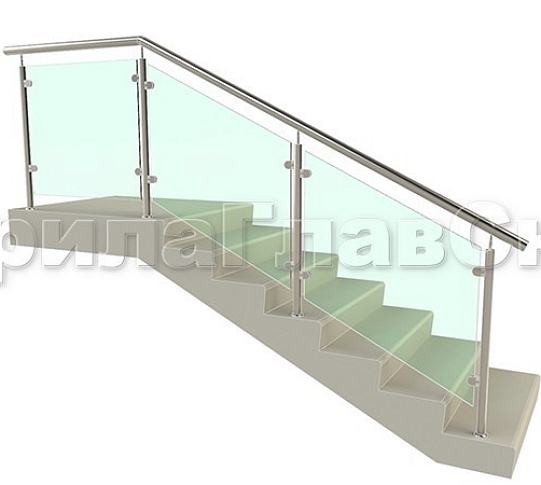 Ограждения лестницы без поручня с зажимными стеклодержателями и стойками