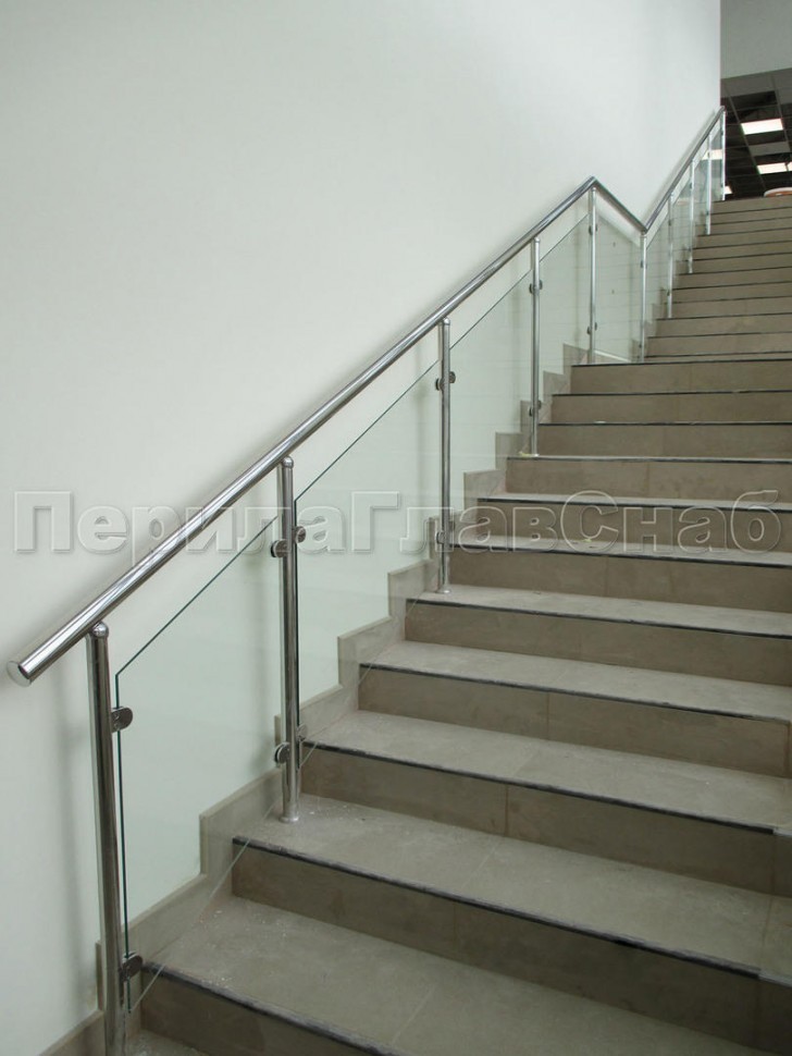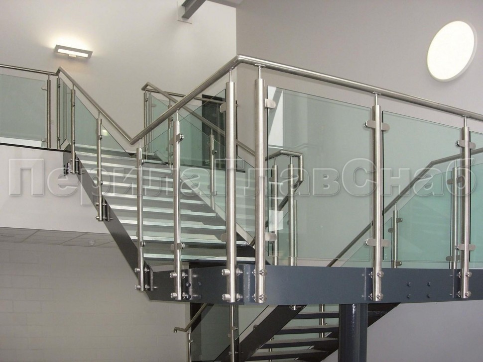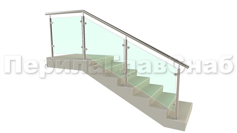 Ограждения лестницы без поручня с зажимными стеклодержателями и стойками
