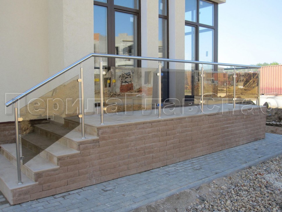 Ограждение для лестницы из нержавейки с зажимными стеклодержателями для крыльца