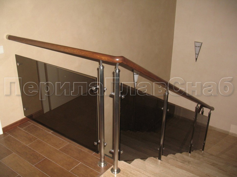 Ограждение с деревянным поручнем с зажимными стеклодержателями и стойками